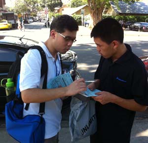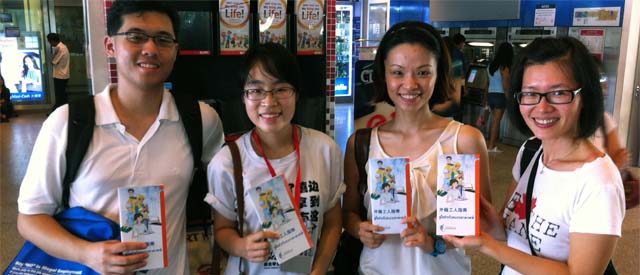 TWC2 community worker Kenneth Soh together with five volunteers devoted a Sunday afternoon distributing information leaflets in the Geylang area, targeting workers from China. Four of the volunteers are in the header image above (left to right): Chan Weng Hong, Guo Quanzhi, Serena Tan and Chou Yahuei. Chloe and Kenneth are not in the picture.