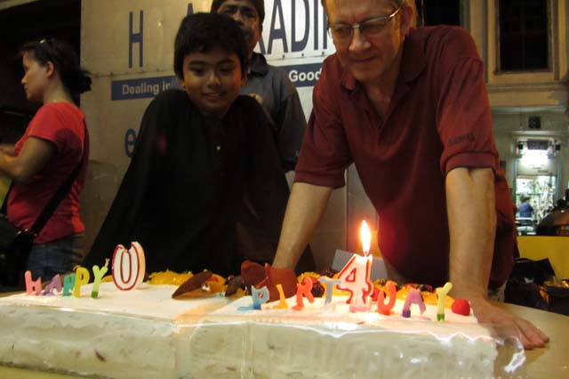 So, even as goodie bags were being handed out, and huge slabs of banana cake and cream cake were being cut and pressed into eager hands, several workers were sitting with volunteers Muni Roger and Jill Ratnam, telling their stories and asking how they could get fair resolution.