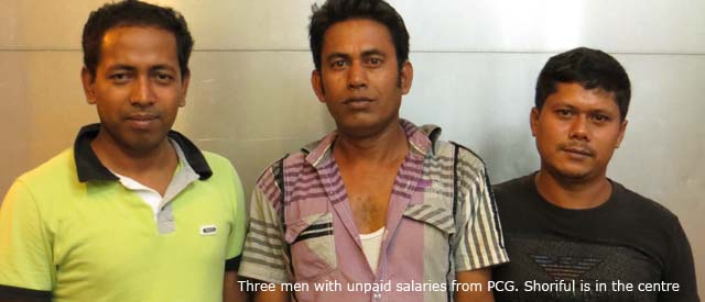 They named their “agent” as Razak, a fellow Bangladeshi supposedly working in Singapore under a Work Permit. “He no working,” Shoriful’s friend says, “only talking, talking, take money.” He was the one who lined up the PCG jobs for them and collected about $3000 to $3500 from each of the workers.