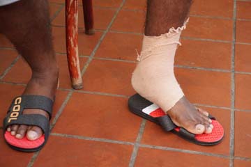 “Why is your ankle still bandaged?” asks Alex. “It’s more than one year since the operation.”