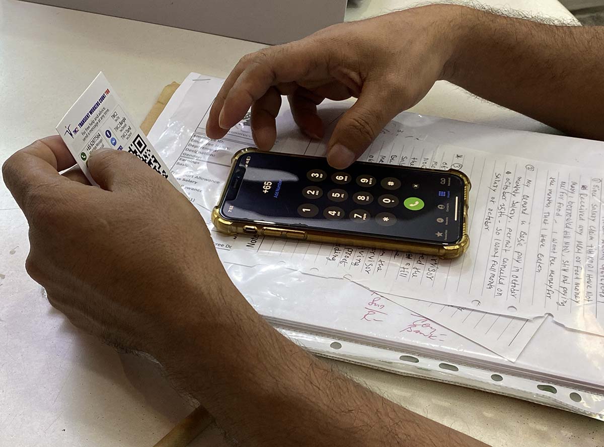 Lutfor storing TWC2’s helpline number into his phone.