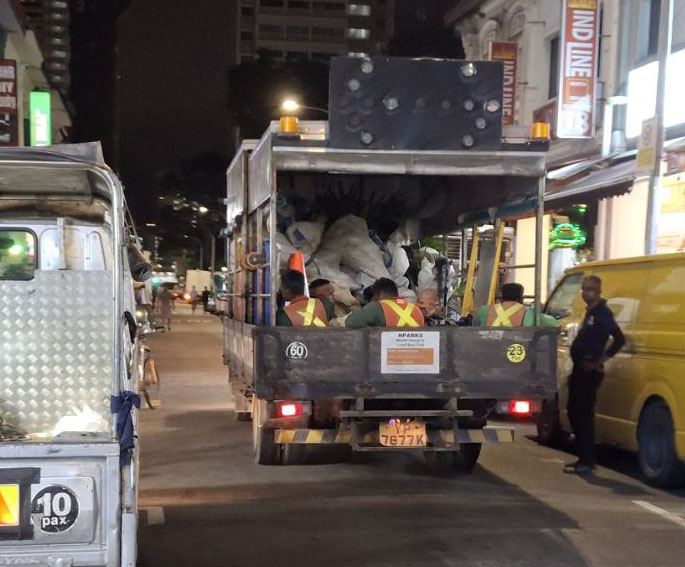 There is hardly any place for men to sit, yet this lorry brought men to Little India (we took the photo only after the men had alighted).