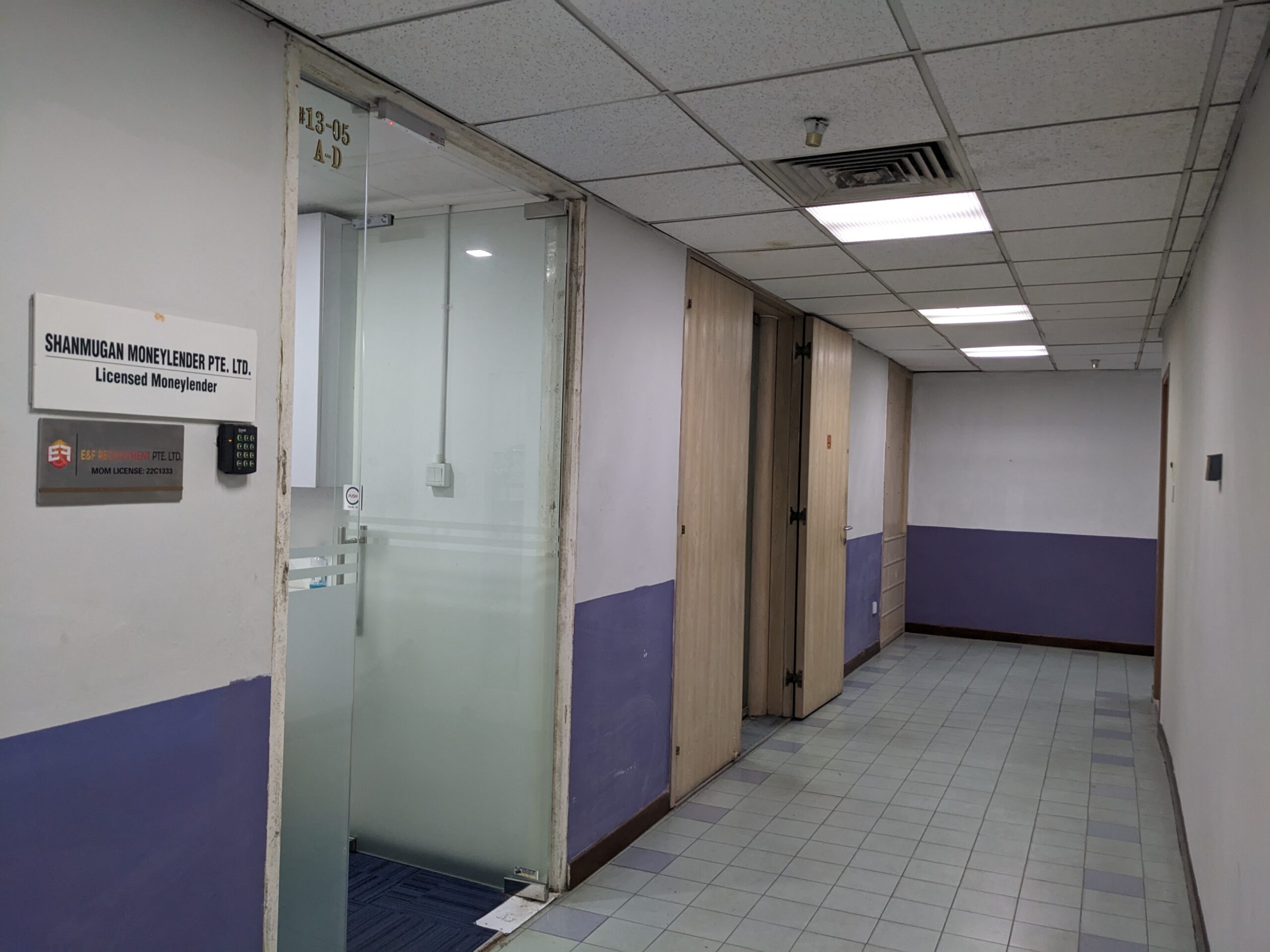 We will allow for the possibility – though we think it’s a remote possibility – that Company M, which is the employer on Masin’s S-Pass, operates out of that office. But there is no signboard with Company M’s name. Instead the only signboard to that suite of offices is the one naming the moneylender. (Given the huge sums of illicit recruitment profits sloshing through, sharing premises with a moneylender somehow seems appropriate.)