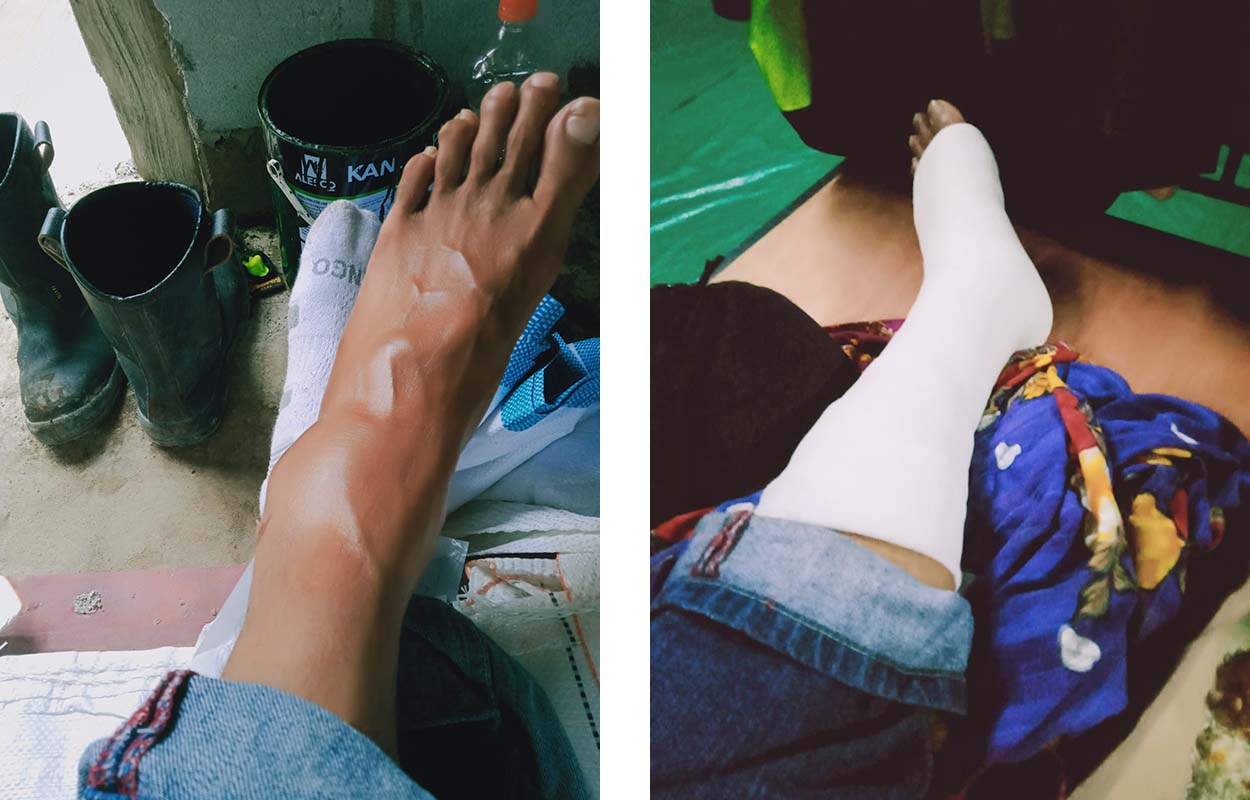 Then the employer brought Nayan to a fourth private clinic in Orchard – it was now two days after the accident – accompanied by the company’s supervisor and manager, where he had surgery to realign his broken bones and secure them with metal plates and screws. Over the following three months, Nayan returned to the same clinic six times for post-surgery appointments. He recalls that every time he asked the doctor for medical leave (what is colloquially referred to in Singapore as “medical certificate” or “MC”), the doctor would respond that he would consult Nayan’s employer.