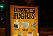 The photo is of an illuminated billboard along Bukit Batok West Avenue 3. It seeks to inform workers of their employment rights, and is sponsored by the Ministry of Manpower (MOM) the Central Provident Fund and TAFEP (Tripartite Alliance for Fair and Progressive Employment Practices). The smaller words in the